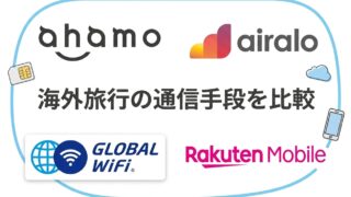旅行準備 海外旅行の通信手段5つを比較|格安SIMユーザーが損しない選び方 海外旅行で使える通信手段(ahamo・楽天モバイル・eSIM・レンタルWiFi・現地SIM)を比較。格安SIMユーザー向けに、短期・長期・複数人など状況別の選び方をわかりやすく解説。実際にエジプト15日間でahamoを使った体験も紹介します。 2026.04.21 旅行準備
